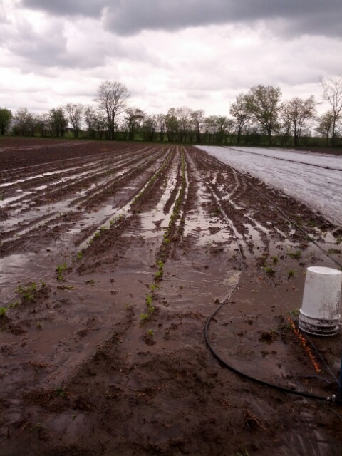Our newly planted celery, celeriac and bunching onions were nicely watered in. Did we ever need that!