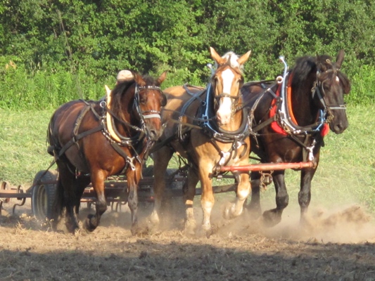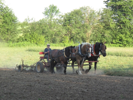 We had a little help from Ian Marnoch keeping up with the cultivating! Ian, Peg, Torque & Calvin (left to right) did almost all the field work together this year. They made a great team.