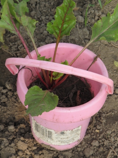 Jessalynn took to carrying this lonely beet around after her cousin Moxie replanted it in her bucket. We still have it today and will see if it survives the winter out with the greens.