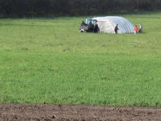 My dad & I designed our own mobile hoophouse this year! Here is it’s first trip across the farm!